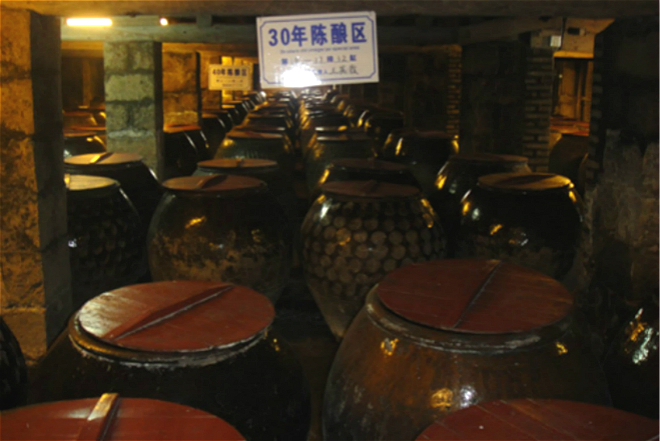 接著在講解員的引導(dǎo)下林副市長(zhǎng)一行人來到了我們的窖藏車間,在感受了迎面撲來的濃濃的醋香以及驚嘆醋窖的規(guī)模后,林副市長(zhǎng)充滿好奇地詢問了關(guān)于窖藏車間的由來。下面是講解員的介紹:“永春老醋窖藏車間始建于1953年,為永春釀造廠創(chuàng)始之時(shí),模擬民間家傳老醋的釀制條件而建。主體為木質(zhì)結(jié)構(gòu)樓房,底層為半地下室環(huán)境終年恒溫恒濕;所有的醋缸都是當(dāng)時(shí)從民間收集而來,數(shù)量超過3000個(gè),至今已有五十多年的歷史。像這樣采用陶制醋缸在半地下室的環(huán)境中按照傳統(tǒng)工藝釀醋的在全國(guó)只有永春老醋一家,其他老醋即使有醋缸也用純手工釀造,但他們都沒有這種半地下室的發(fā)酵環(huán)境。所以永春老醋的窖藏車間是全國(guó)唯一獨(dú)有的。由于陶制醋缸,口小壁薄,容量大,散熱快,所以比較適宜有益微生物菌群的生長(zhǎng)和繁殖。然后在這種靜態(tài)環(huán)境中將紅酒中的酒精和營(yíng)養(yǎng)成分轉(zhuǎn)化成醋酸和其它香味物質(zhì),使醋酸菌充分發(fā)酵。再加上采用獨(dú)特的液態(tài)深層發(fā)酵的傳統(tǒng)工藝,紅曲酒分期分批地添加到不同年份的醋缸中發(fā)酵轉(zhuǎn)酸,接著不同年份的發(fā)酵缸逐年交替分割取醋,之后再添加炒熟的芝麻增香陳釀;最后會(huì)有專門的釀醋師傅每天手工攪拌、分割和補(bǔ)料。所以采用陶質(zhì)醋缸,在恒溫、恒濕的窖藏環(huán)境中按照傳統(tǒng)工藝生產(chǎn)的永春老醋歷經(jīng)數(shù)十年流轉(zhuǎn)陳釀,酸香醇厚,品味精絕,乃醋中極品,值得典藏。.jpg)