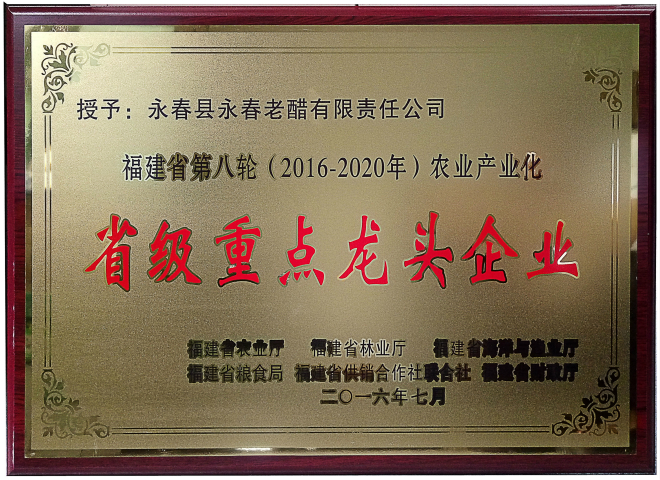 熱烈慶祝永春老醋公司入選“福建省第八輪農(nóng)業(yè)產(chǎn)業(yè)化省級(jí)重點(diǎn)龍頭企業(yè)達(dá)標(biāo)名單”