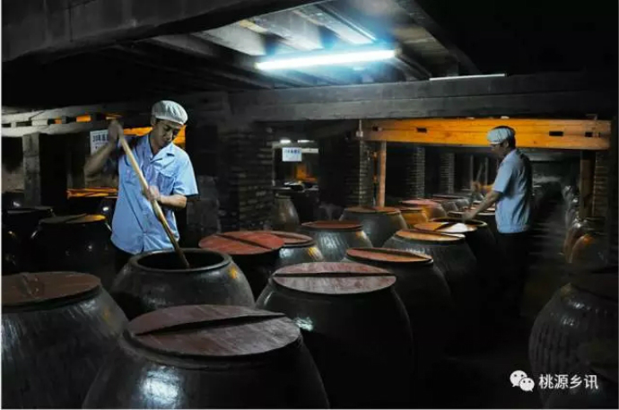 在窖藏車間,釀醋師傅在對(duì)每個(gè)陶制醋缸里的醋進(jìn)行攪拌,讓缸里的醋充分吸收氧氣、活動(dòng)起來,以便更好的發(fā)酵。