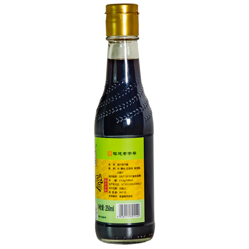 選用陳釀多年的永春老醋(液態(tài)發(fā)酵,純糧釀造),輔以精心秘制的大蒜汁佳釀?wù){(diào)制而成。酸度5.0,其蒜香撲鼻,入味醇香,酸而不澀,而且無(wú)需添加劑和防腐劑。具有酸、香、味、鮮、色的特點(diǎn),非常適合蘸食餃子,增香助味;也可用于火鍋、涼拌、燒烤調(diào)味等。