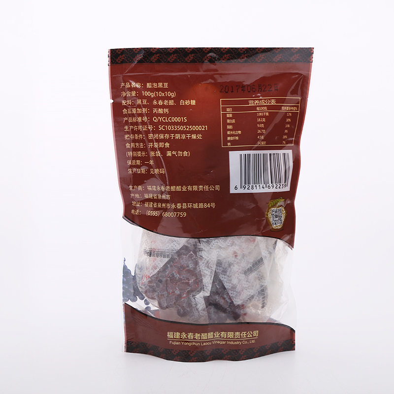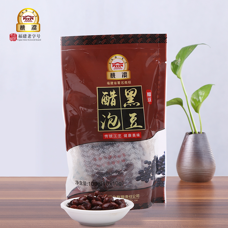 選用優(yōu)質黑豆、陳釀多年的永春老醋、白糖等為原料,采用傳統(tǒng)工藝制作,以陶缸為器皿,純手工操作,歷經(jīng)幾大工序精心泡制而成。加之浸泡時間足夠長,故生產(chǎn)出的醋泡黑豆橢圓黒褐,酸軟適口,好吃有味,富含營養(yǎng),是一種很好的健康美食。非常適合平時佐餐小食或零食食用。
